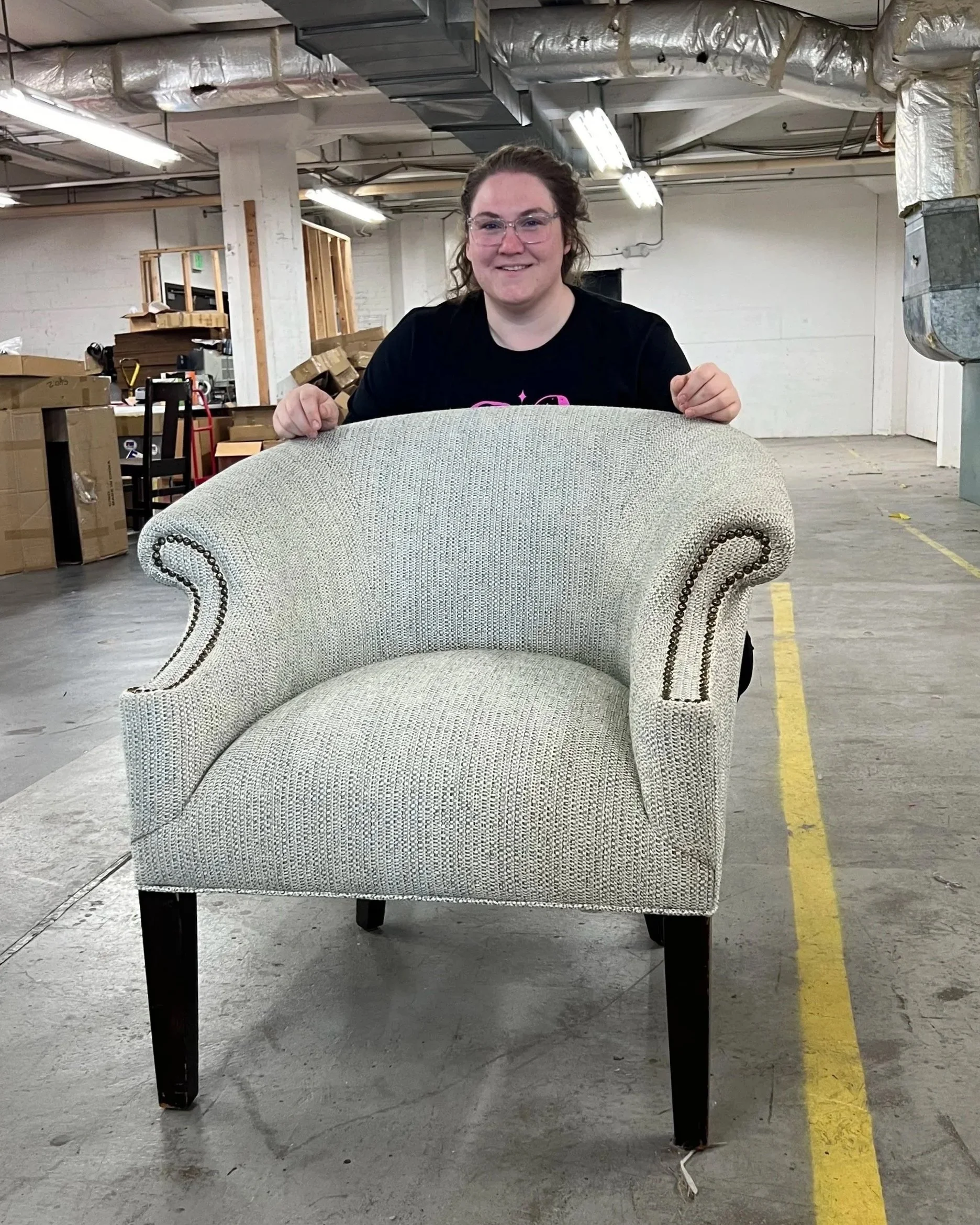 Marisa is nearing graduation from our training program and will soon join our instructional team as an assistant upholstery training member, while also launching her professional career as an upholsterer with The Cavanagh House.”